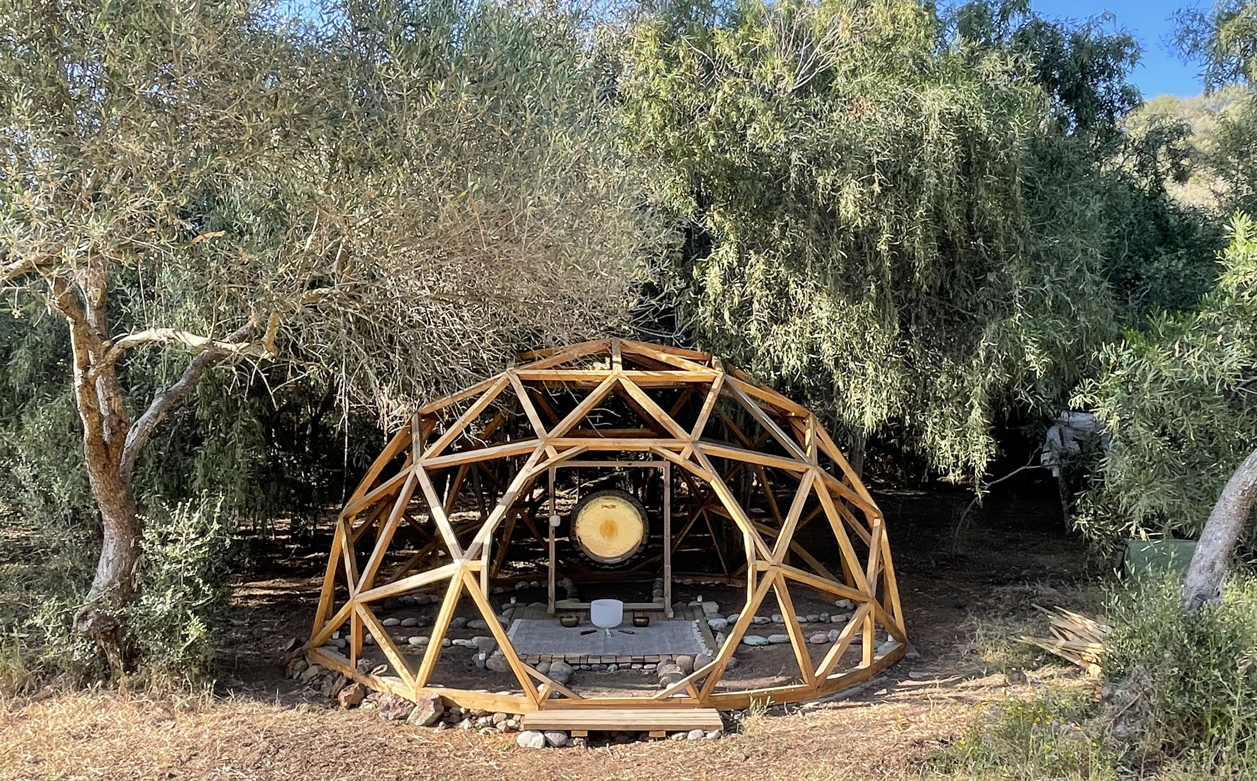 Un dôme, composé entièrement de bois, vous accueille à l’ombre d’une petite fôret, à la lumière rafraîchissante des champs d’oliviers et d’immortelles.